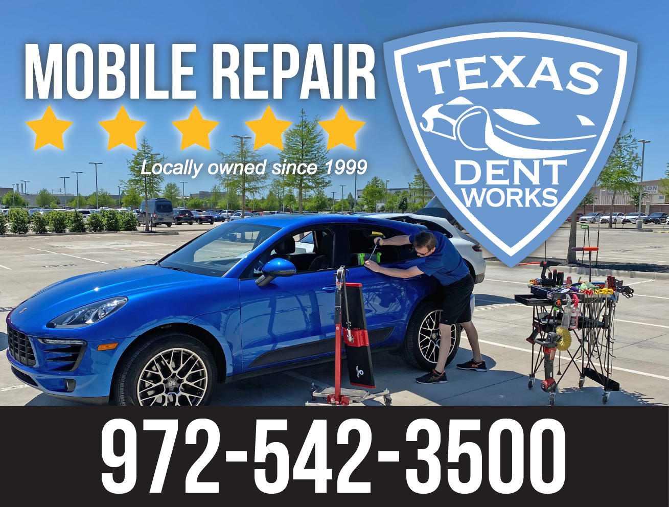 Depending on the severity of your damage, we may also be able to repair your dents and dings at your home or business with our mobile repair service. Please call or text us a photo of your damage for a fast and easy quote. You can reach us at 972-542-3500. Thanks!